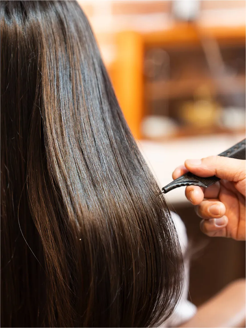 縮毛矯正やトリートメントなどの施術により指通りがなめらかなサラサラヘアを目指しませんか。